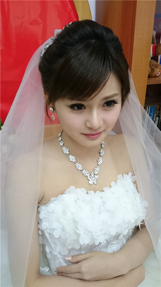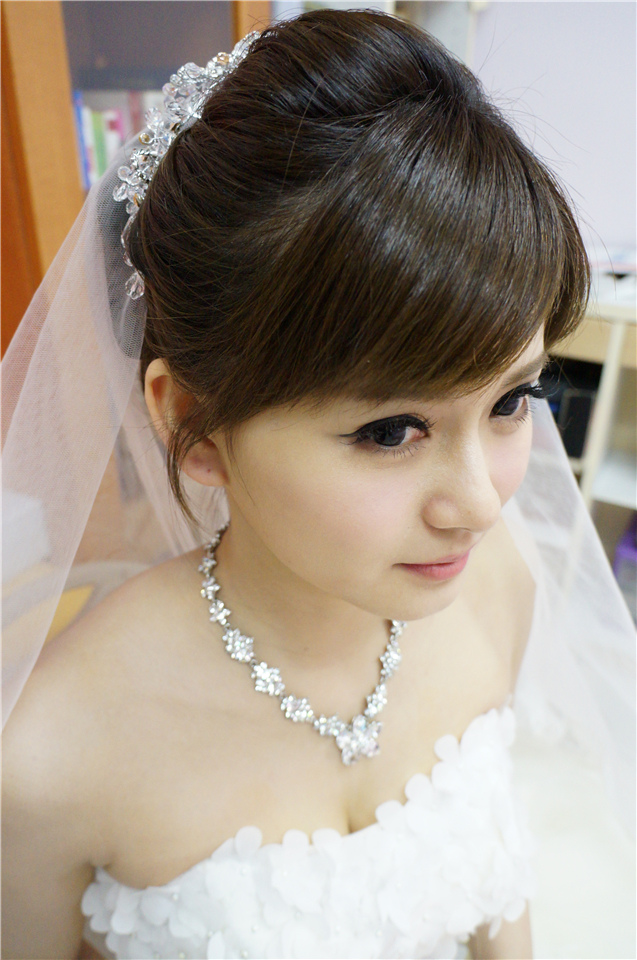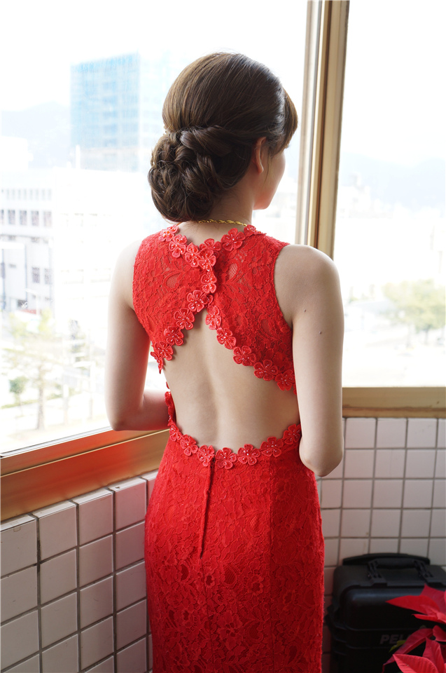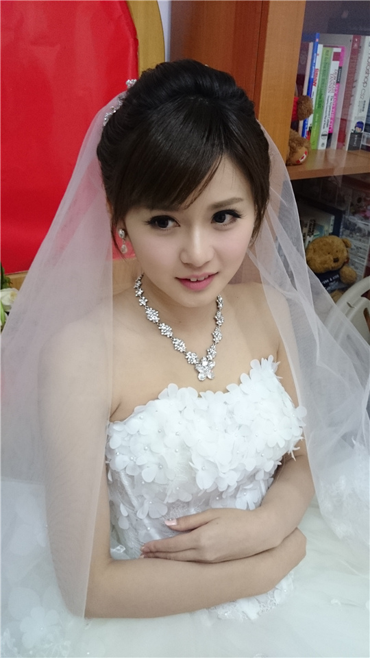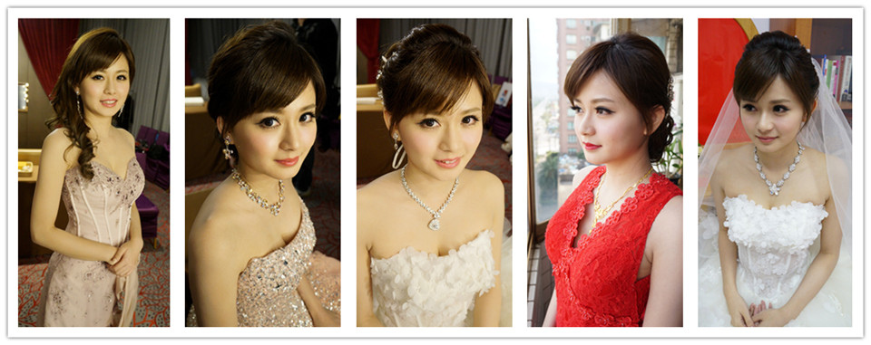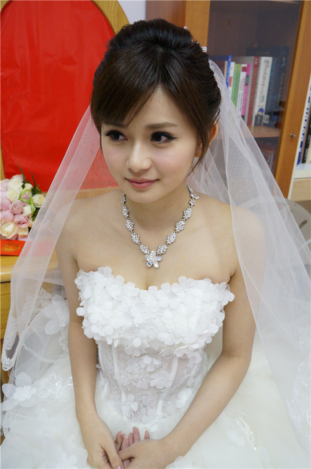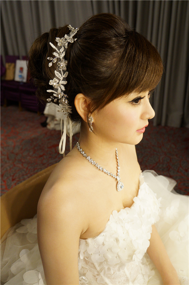 這個造型呢,是依照她當時給我的感覺,隨興抓出來的,我蠻常這樣的,因為在婚宴前沒見過新娘本人,只能看照片來揣摩造型,所以當見到新娘穿上禮服後又給了我靈感,改變造型是常有的事,這時候新娘的信任就很重要了,不然心臟不大顆就會蠻驚嚇的,但我可是對自己的美感很自信的呢