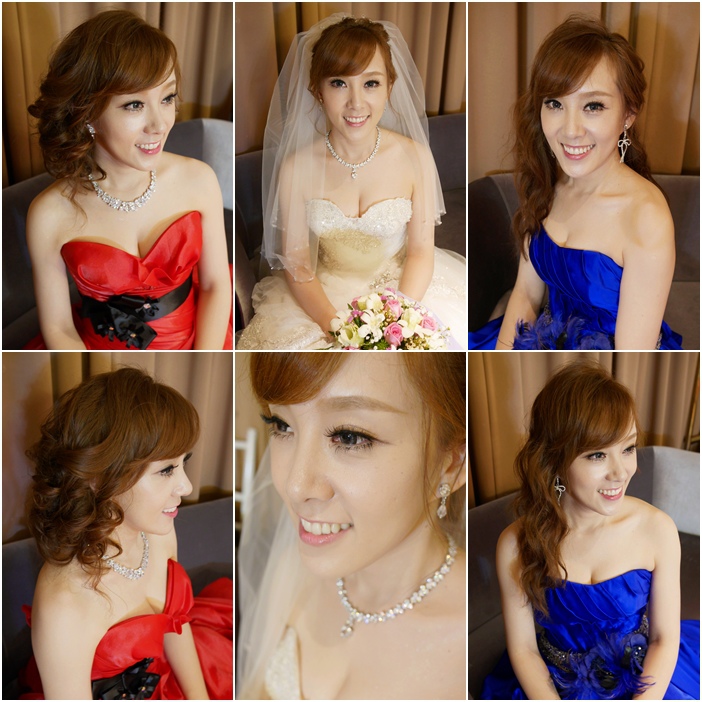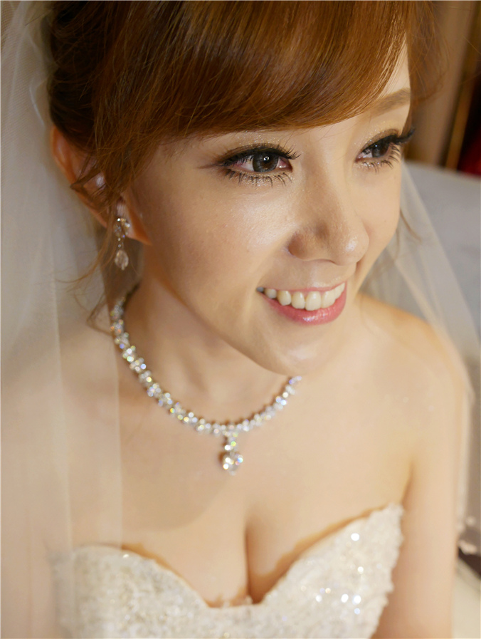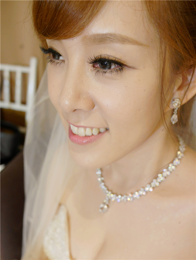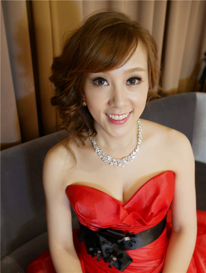剛開始貼上一邊的假睫毛時,她說比她的訂婚場濃,這睫毛應該是姐姐會喜歡的,但是兩隻眼睛都完成時,她開心的笑說"我好正喔",是不是!!!!相信專業很重要,尤其是純宴客直接進餐廳,其實可以讓眼妝比較凸顯一點,這樣會更有效果
