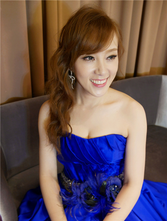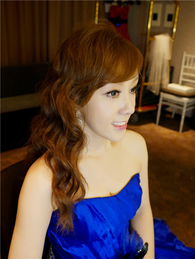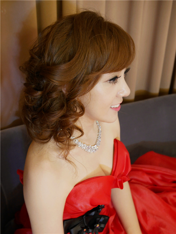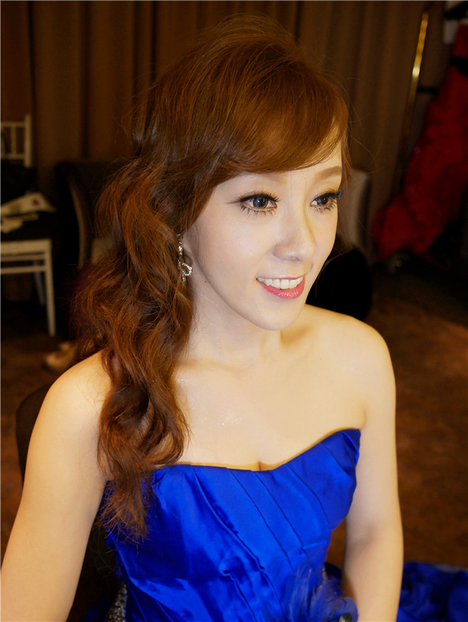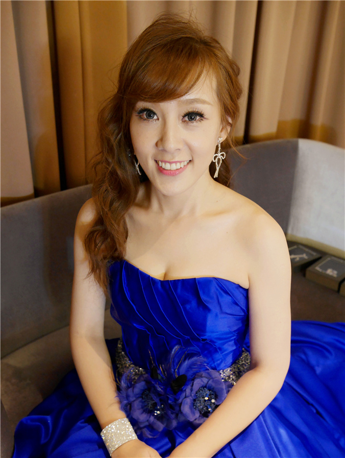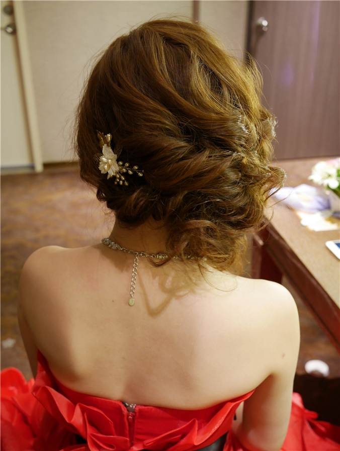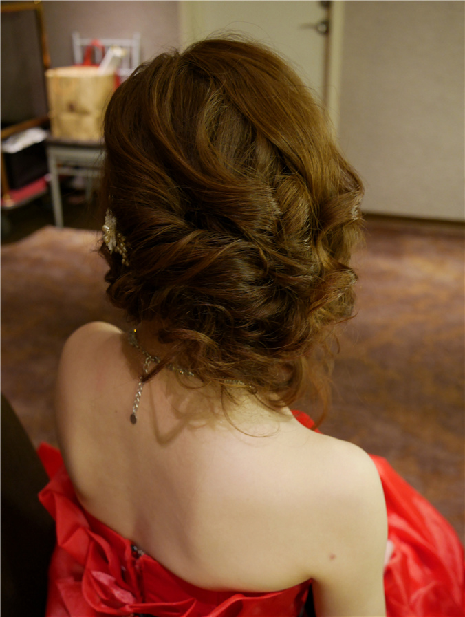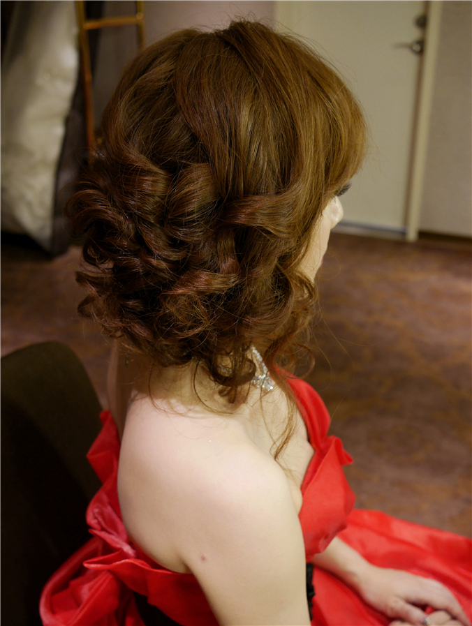 大波浪的側邊捲髮還蠻適合這套禮服也很適合信瑋