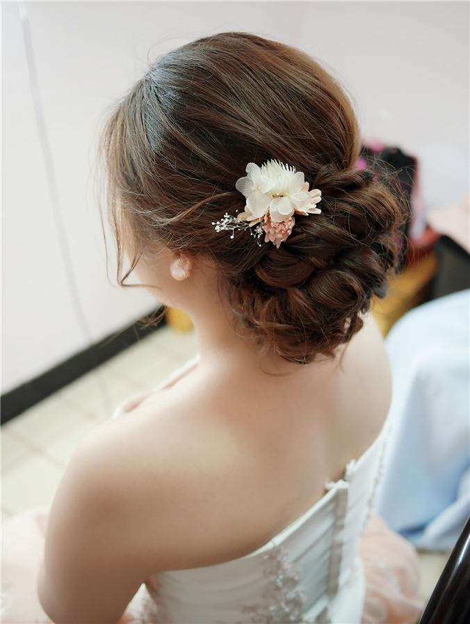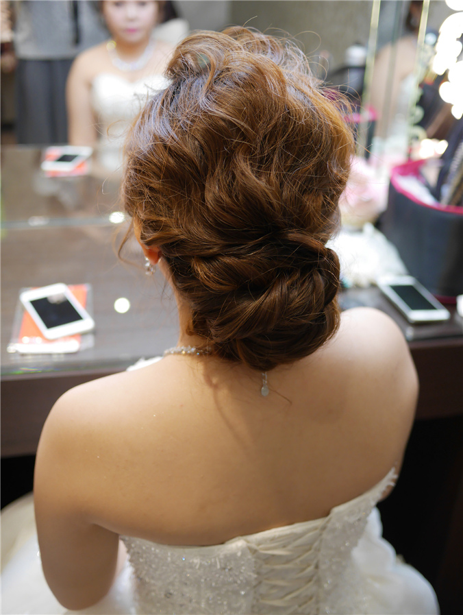 利用大捲度的側邊髮,修飾臉型,也是目前很受新娘喜歡的髮型,韓不韓阿,新娘們^^