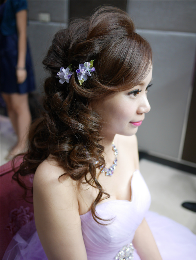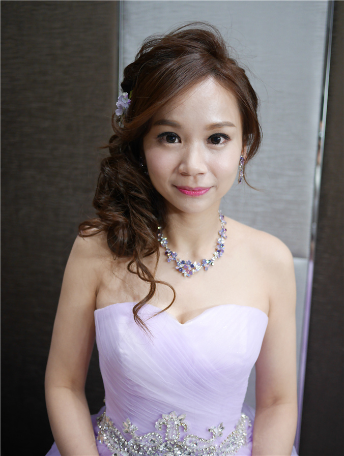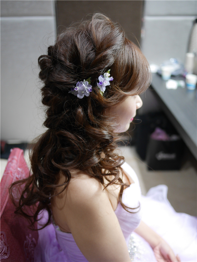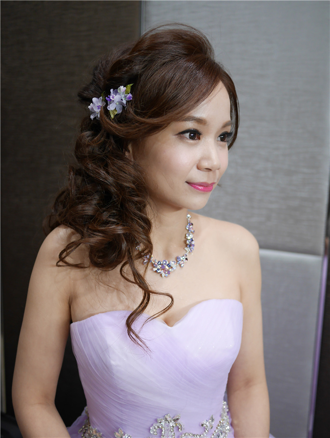 側邊髮很適合送客喔,加上淡紫色小花點綴,整體感很搭配,也添了小浪漫風
